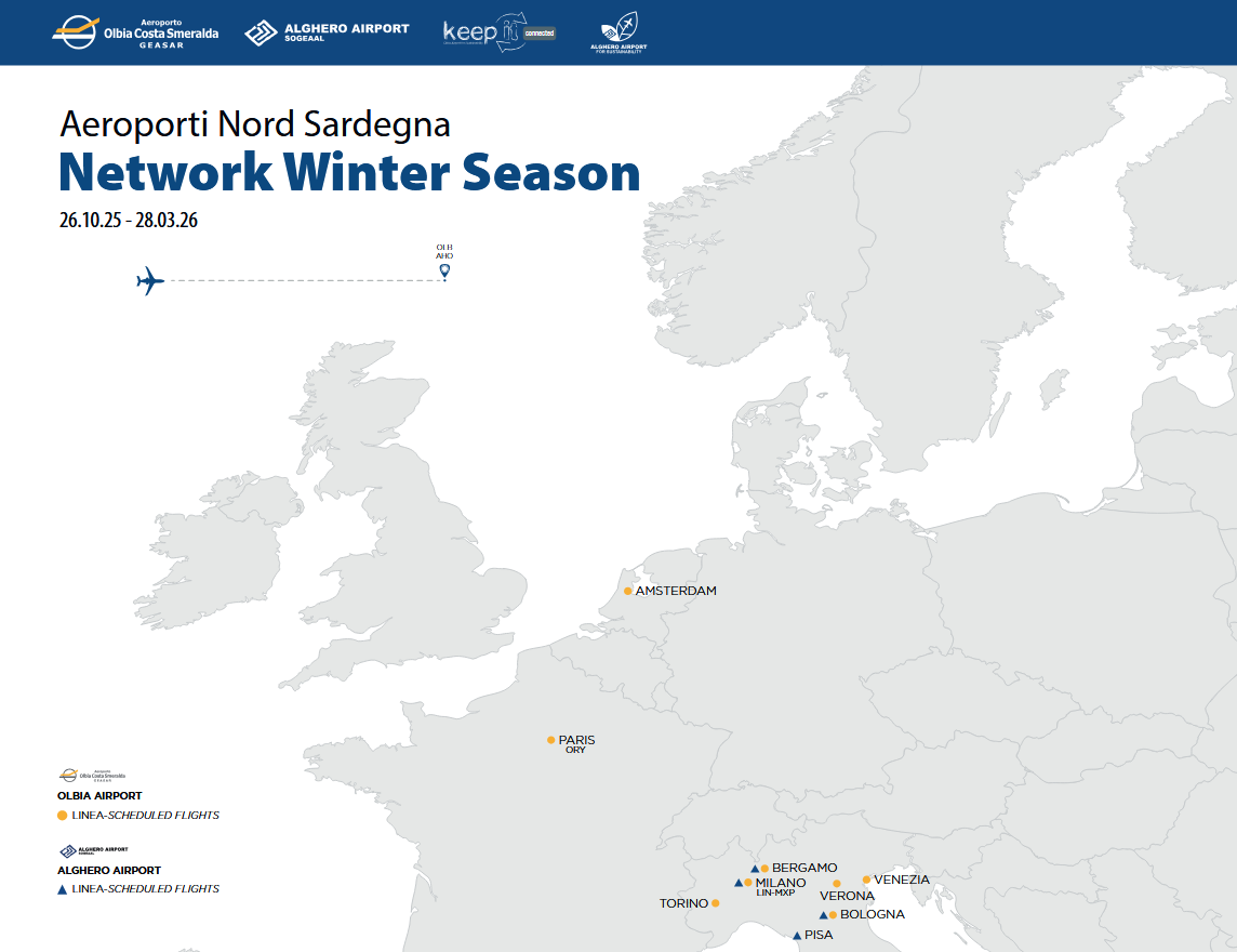 Da domenica 26 ottobre è iniziata ufficialmente la stagione Winter 2025-2026 degli aeroporti del Nord Sardegna, con diverse conferme e alcune novità di particolare interesse.